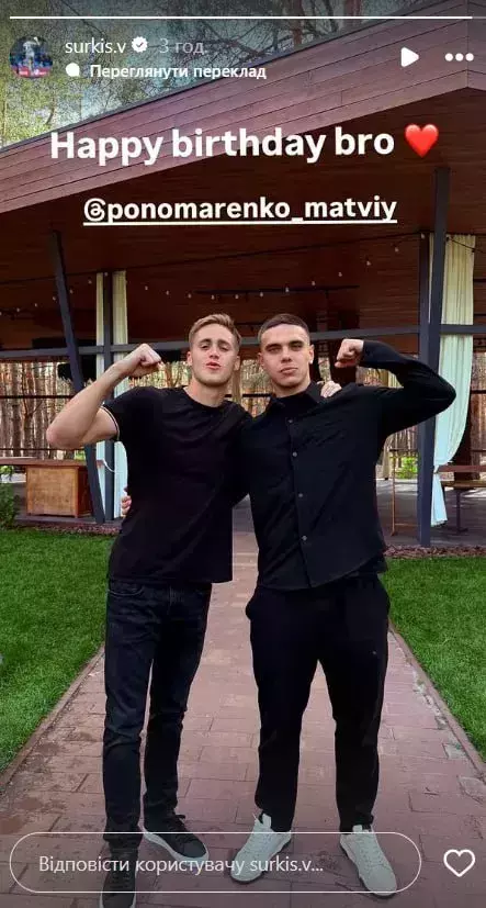 Воротар юнацької команди київського футбольного клубу «Динамо» В’ячеслав Суркіс звернувся у своїх соціальних мережах до нападника столичного клубу Матвія Пономаренка, який відзначив 20-й день народження.