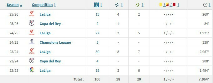 Ювілейна гра відбулася 10 січня в 19-му турі Ла Ліги проти Осасуни (1:0). Українець провів на полі весь матч, від стартового свистка до фінального.