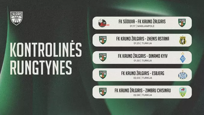Серед опонентів чемпіона Литви значиться й київське «Динамо». Гра запланована на 30 січня, а час старту зустрічі буде повідомлено згодом.