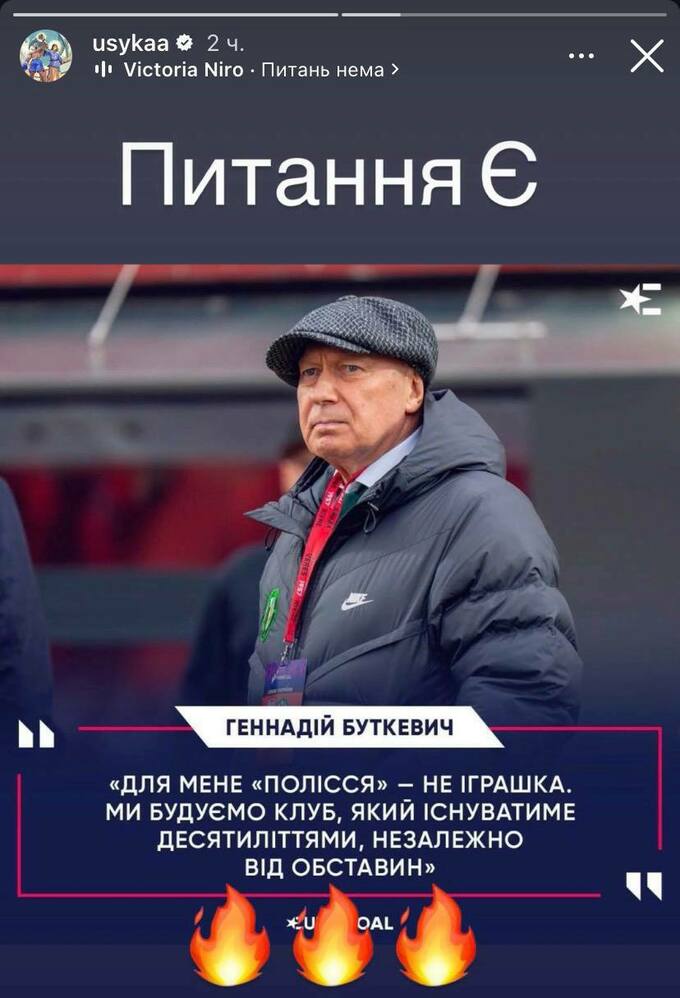 «Питання є?», – лаконічно написав Олександр у своєму Instagram, прикріпивши цитату Буткевича.