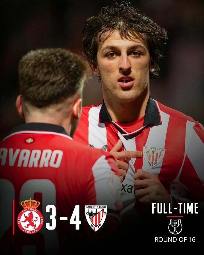 Атлетік Більбао у дуже результативному матчі з додатковим часом здолав команду Культураль Леонеса (4:3 д.ч.) та вийшов до чвертьфіналу Кубка Іспанії.