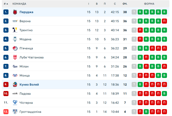 У середу, 14 січня, відбудеться матч 16-го туру однієї з найсильніших волейбольних ліг світу – Італійської Суперліги. О 21:30 за київським часом свій сезон продовжить клуб «Перуджа», за який виступає колишній капітан збірної України Олег Плотницький. Команда зіграє на виїзді проти «Кунео Воллей».