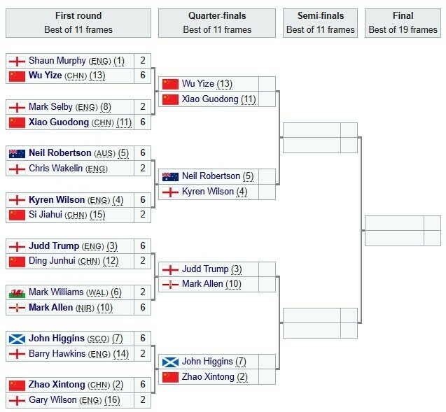 - 15.01 15:00. Джон Хіггінс (Шотландія) – Чжао Сіньтун (Китай)