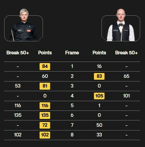 Це був третій сенчурі Ніл в матчі та 46-й на Masters, що зрівняло його з показником Хендрі, більше має лише О’Салліван.