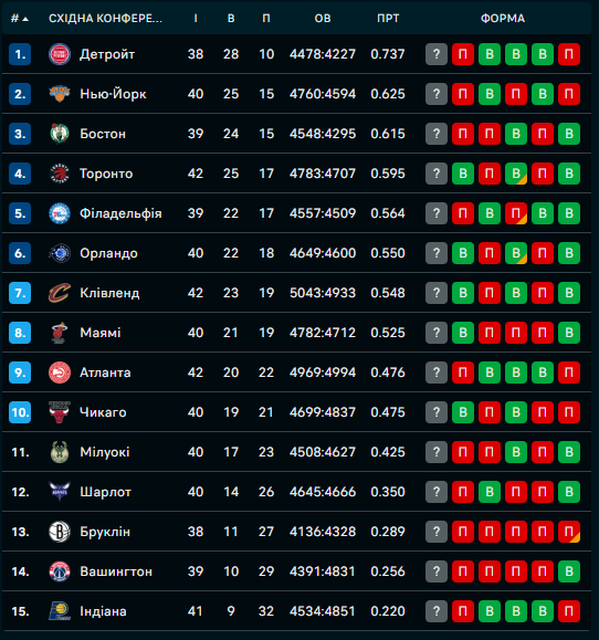 Турнірні таблиці