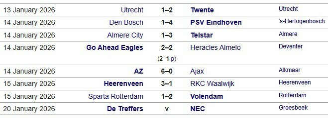 Останній матч 1/8 фіналу між командами Де Трефферс та НЕК Наймеген пройдуть 20 січня.