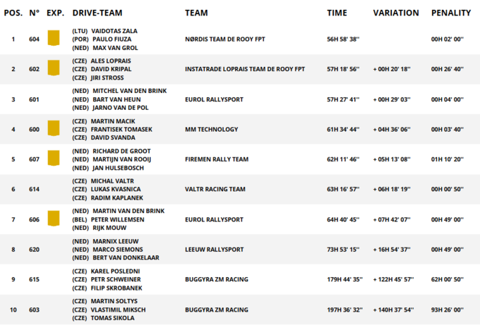 На другому місці опинилася команда INSTATRADE Loprais Team De Rooy FPT – чехи Алеш Лопрайс, Давід Крипал та Їрі Строс відстали на 20 хвилин і мали додатковий штраф у 26 хвилин 40 секунд.