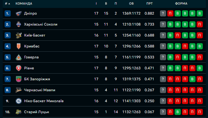Турнірна таблиця