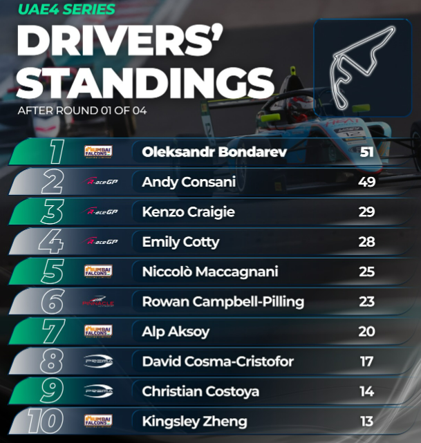 Бондарев упевнено розпочав сезон Формули-4 Близького Сходу з претензією на титул