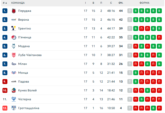 У неділю, 18 січня, відбулися заключні матчі 17-го туру волейбольної Суперліги Італії. В одному з центральних поєдинків туру між собою зустрілися Перуджа та Лубе Чівітанова. За команду з Умбрії виступає колишній капітан збірної України Олег Плотницький.