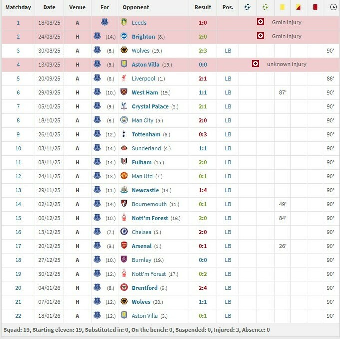 Виступи Віталія Миколенко за Евертон у сезоні АПЛ 2025/26