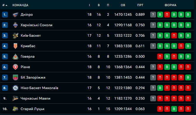 Турнірна таблиця