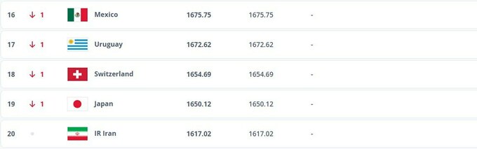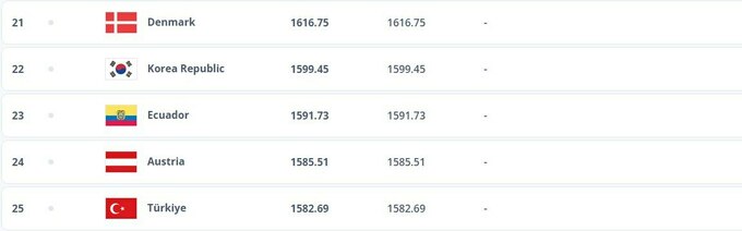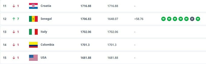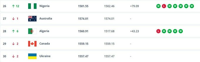 Підопічні Сергія Реброва мають у своєму активі 1 557.47 бала і пропустили вперед Нігерію та Алжир, тому і впали на дві позиції вниз.