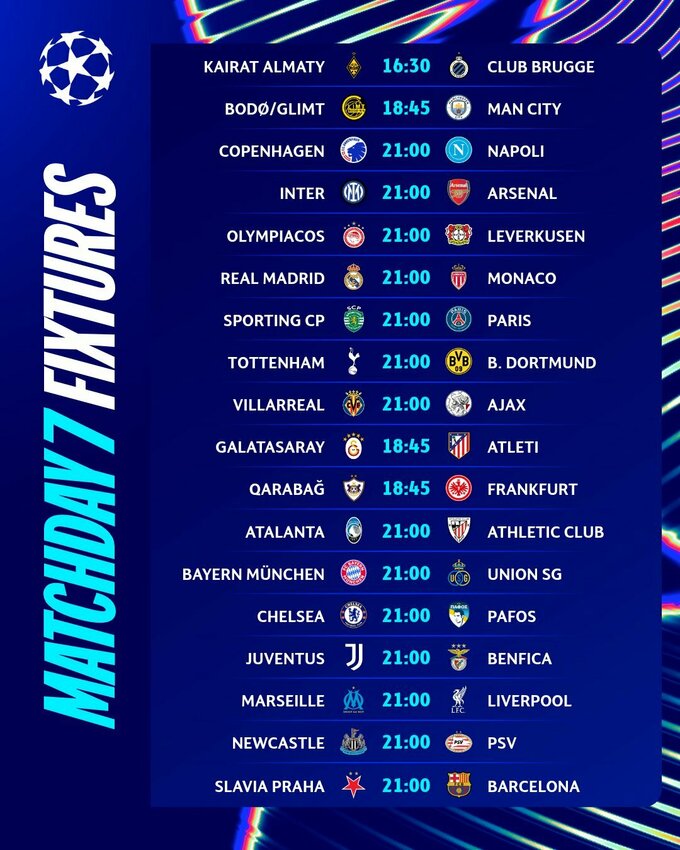7-й тур основного раунду Ліги чемпіонів УЄФА 2025/26 відбудеться 20 та 21 січня.