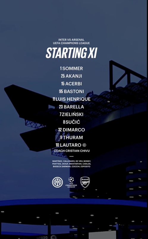 Інтер та Арсенал назвали стартові склади на матч Ліги чемпіонів