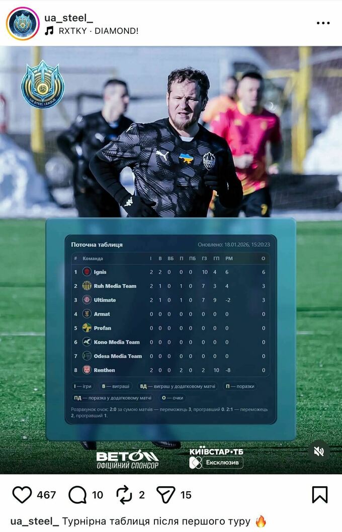 Після першого вікенду одноосібним лідером стала команда Ignis, яка взяла максимум — 6 очок. Слідом за ними розташувалися Ruh Media Team та Ultimate. Це був лише початок, але UA Steel League 2026 вже довела, що тут буде на що подивитися. Динаміка, драйв, шоу і реальна спортивна боротьба — ідеальне поєднання для вболівальника.