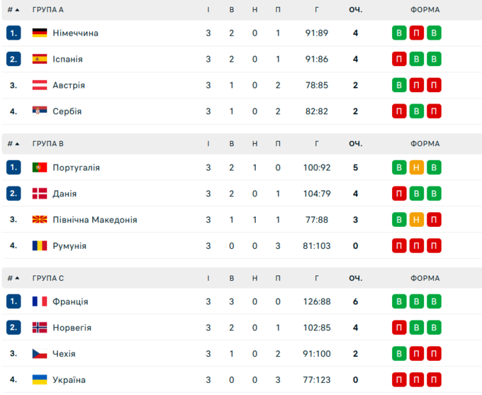 На чемпіонаті Європи з гандболу завершився попередній груповий етап