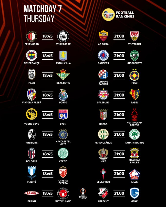 У 7-му турі увагу привертають матчі: Брага – Ноттінгем Форест, Рома – Штутгарт.
