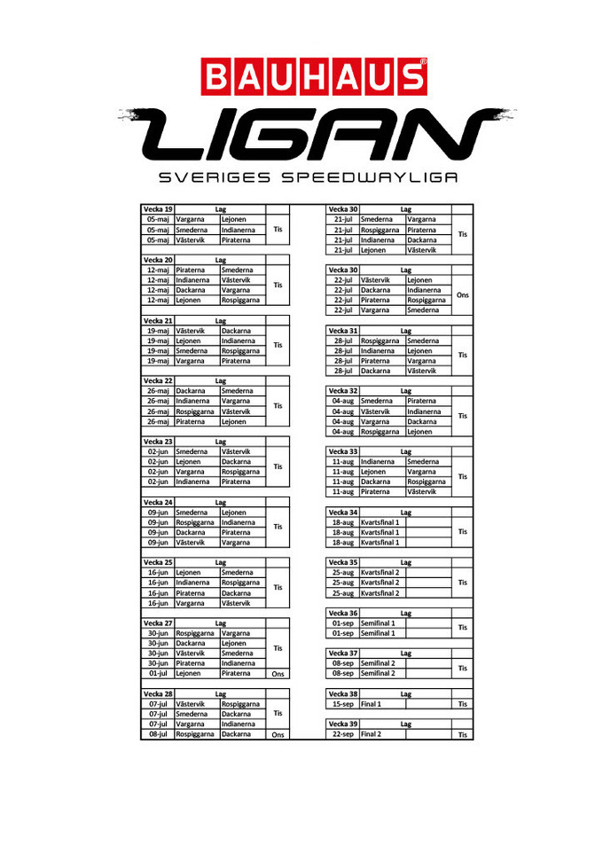 Командний чемпіонат Швеції зі спідвею, Елітсерія, опублікував календар на сезон 2026 року.