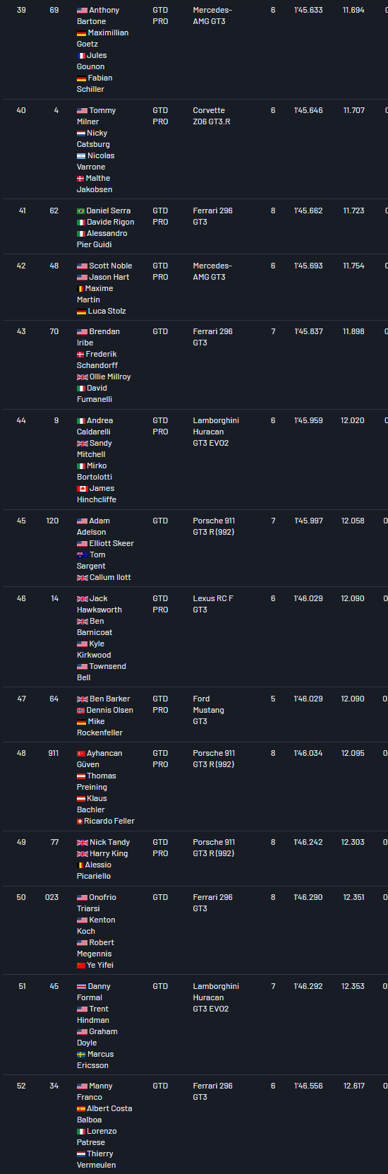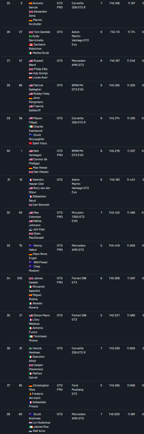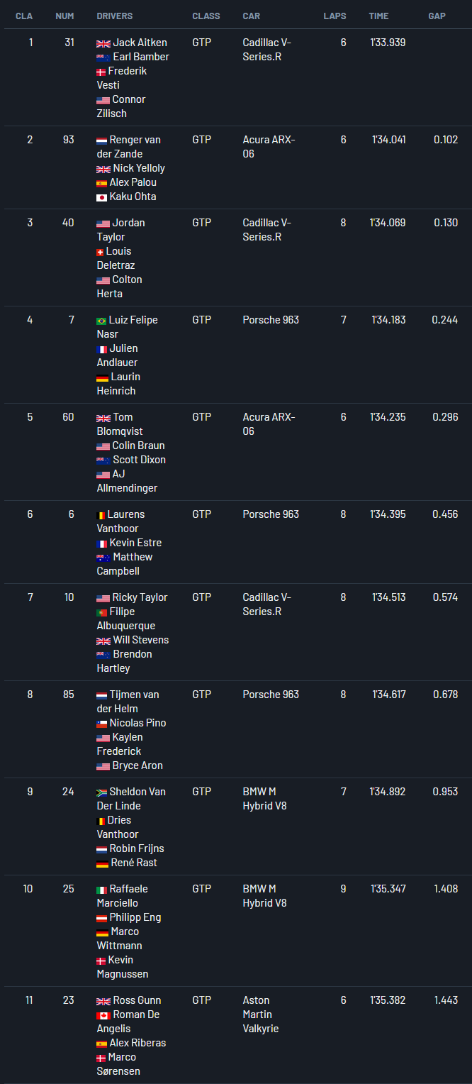 Друге місце посів Ренгер ван дер Занде на Акура №93, який відстав від лідера всього на 0,102 секунди. У складі цього екіпажу також виступає чинний чемпіон Індікар Алекс Палоу. Третім став Луї Делетраз на Кадилак №40, напарник пілота Ф1 Колтона Херти, відставання склало 0,130 секунди.