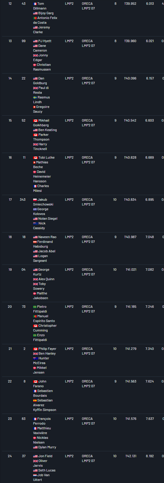 Джеремі Кларк здобув поул у класі LMP2 після напруженої сесії. Він показав коло 1:39.952 на ORECA LMP2 07 №43. АО Рейсінг №99 відстав всього на 0,008 секунди і зайняв друге місце, тоді як Деніел Голдбург на Юнайтед Автоспорт №22 був третім, відставши на 0,144 секунди.