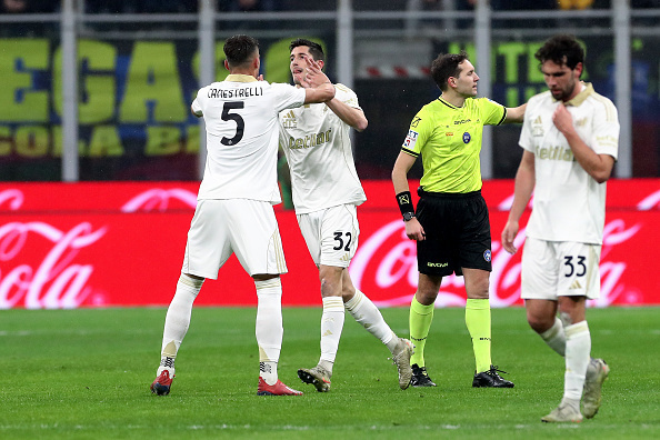 Потім, до завершення першої 45-хвилинки, Інтер забив три м'ячі. Відзначилися Пьотр Зеліньскі (пенальті), Лаутаро Мартінес і Франческо Еспозіто.