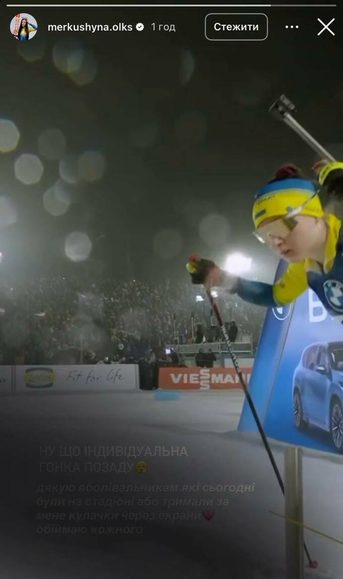 Українська біатлоністка Олександра Меркушина в соціальній мережі Instagram подякувала вболівальникам після короткої індивідуальної гонки на Кубку світу в Нове Место (Чехія).