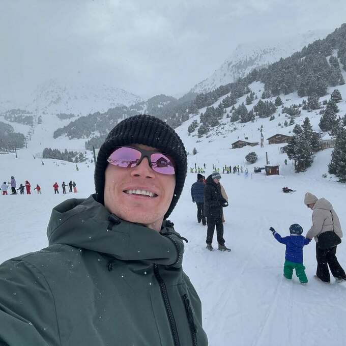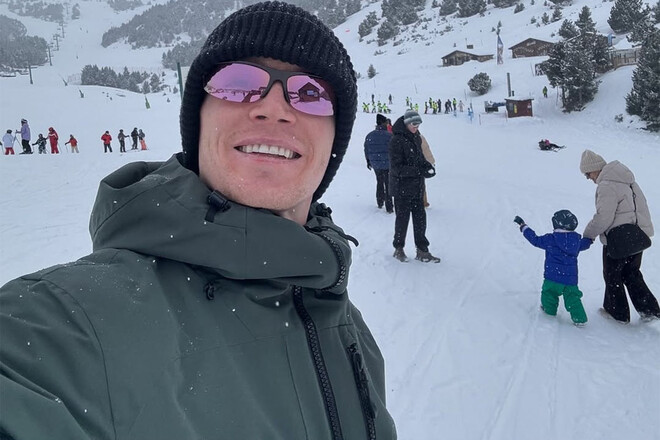 На фото футболіст «Жирони» відпочиває на засніжених курортах, катається на санях і насолоджується часом далеко від футбольних буднів.
