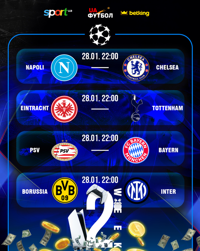 - Наполі – Челсі (28.01. 22:00)