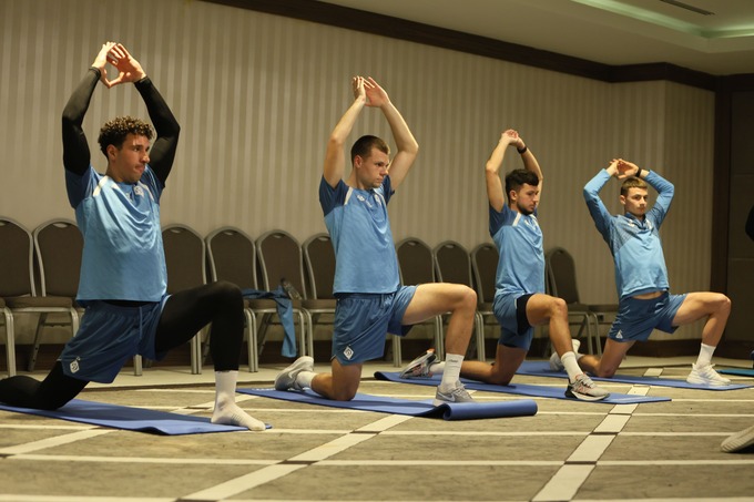 ФОТО. Тренування Динамо перед грою. Аеробіка, стретчінг, робота з м'ячем