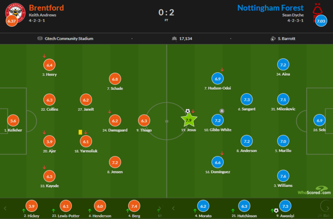 Оцінки за матч Брентфорд – Ноттінгем Форест: