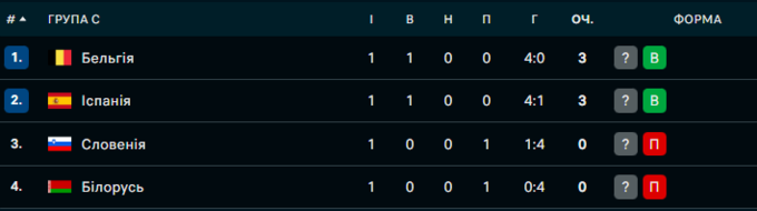 У першому турі Бельгія знищила білорусь, а Іспанія здолала Словенію.