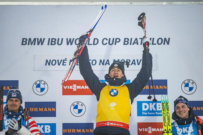 І який перформанс продемонстрував француз! Ерік ідеально пройшов чотири вогневі рубежі. Француз на заключній стрільбі перевів подих перед останнім пострілом, який, зрештою, був влучним. А суперників, які могли б нав’язати боротьбу по дистанції, поряд не було. Тож чеський етап для Еріка вийшов золотим, позаяк він оформив золотий дубль за підсумками обох гонок. Відтак Перро обігнав Джакомеля в тоталі, ставши новим лідером по закінченні другого триместру. Наразі між конкурентами (водночас добрими друзями поза трасою) відстань становить 37 очок на користь француза. Крім того, він став і лідером у заліку масстартів. Там Ерік також уже виграє 45 очок в італійця.