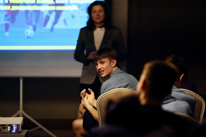 У понеділок, 26 січня, ввечері гравці першої та юнацької команд «Динамо» зібралися у залі для теорій готелю, де на них чекала зустріч з головою Комітету арбітрів УАФ Катериною Монзуль.