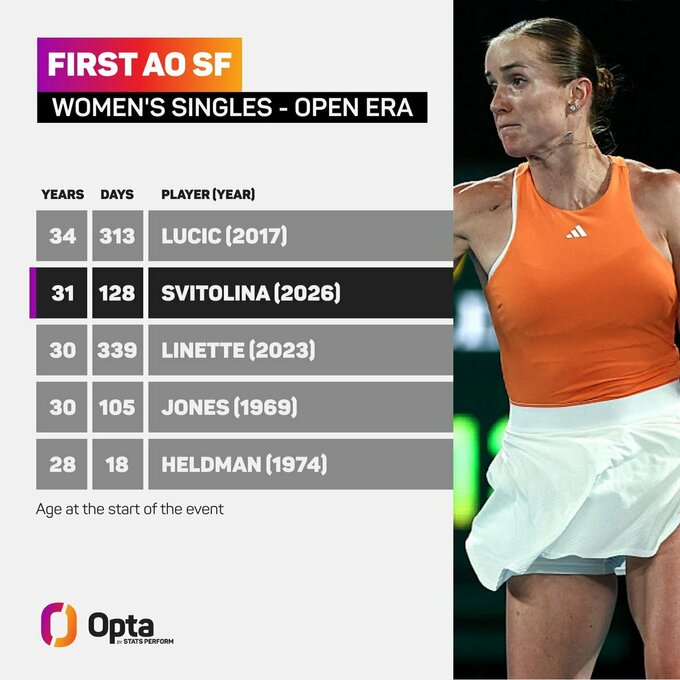 Також Еліна (31 рік і 128 днів) – друга за віком тенісистка у Відкритій ері, яка вперше вийшла до півфіналу австралійського слему, поступаючись лише Мірьяні Лучич-Бароні (2017 рік, 34 роки і 313 днів).