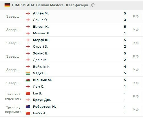 26 та 27 січня пройшли матчі стартових раундів снукерного турніру 2026 German Masters.