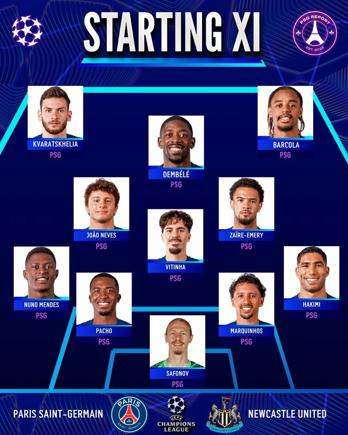 Стартові склади ПСЖ та Ньюкасла на матч Ліги чемпіонів: