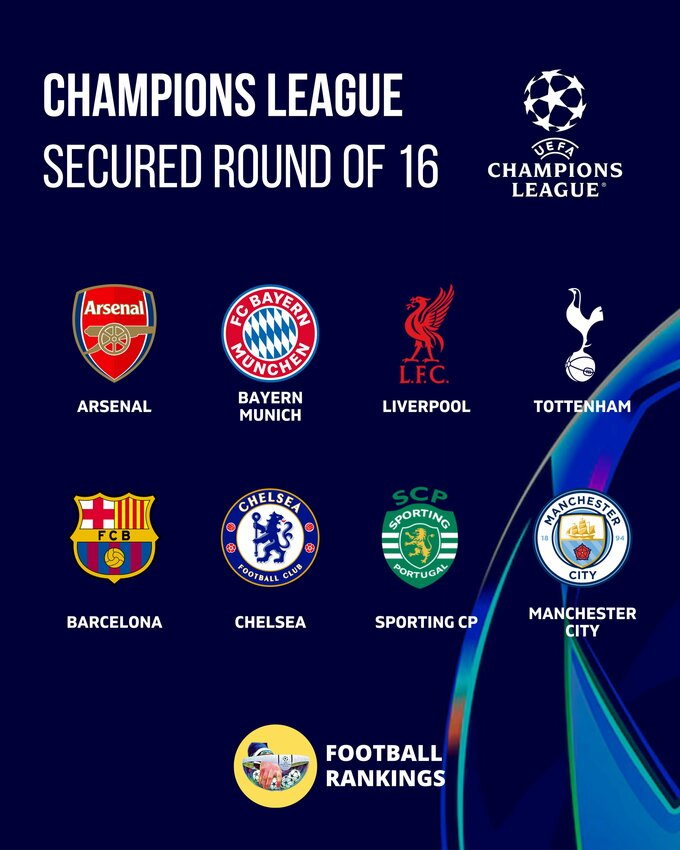 До 1/8 фіналу Ліги чемпіонів вийшли 8 команд: