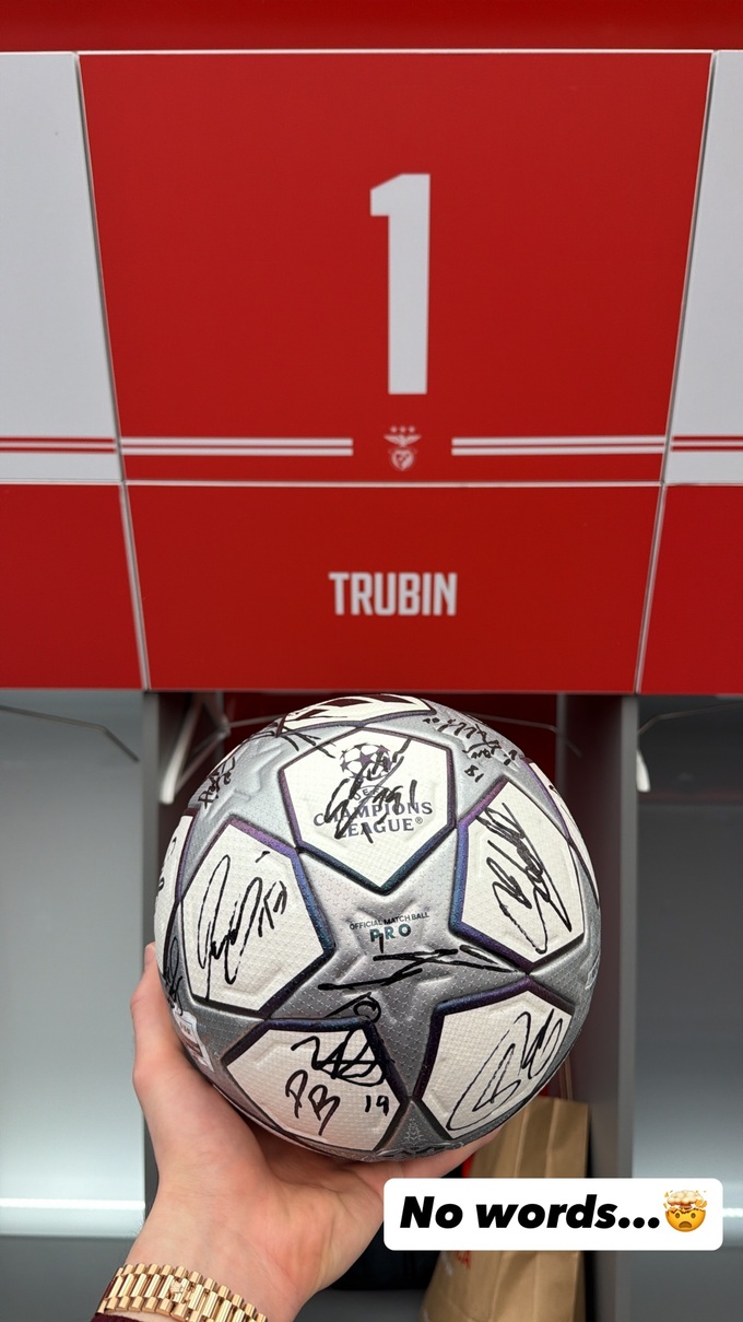 На фото — ігровий м’яч з автографами всіх футболістів, імовірно «Бенфіки», та підпис: «No words» («Немає слів»).