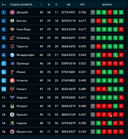 Торонто – Нью-Йорк – 92:119 (28:18, 23:29, 19:35, 22:37)