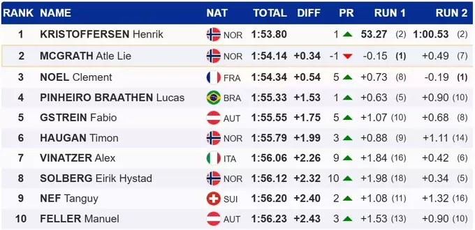Його партнер – Атле Лі Макграт – втратив лідерство та показав другий результат. Третім став француз Клеман Ноель.