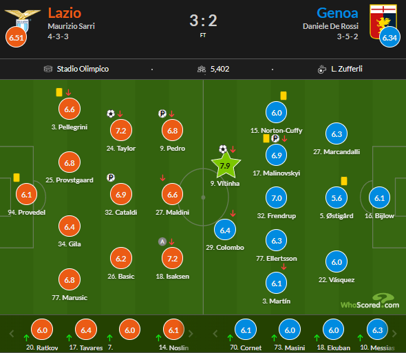 Оцінки гравців за матч Лаціо – Дженоа (3:2)