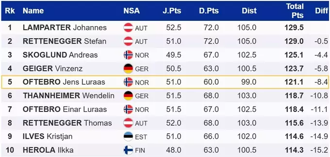 Другим став його партнер – Штефан Реттенеггер, якому не вистачило 0.5 бала. Трійку замкнув норвежець Андреас Скоглунда.
