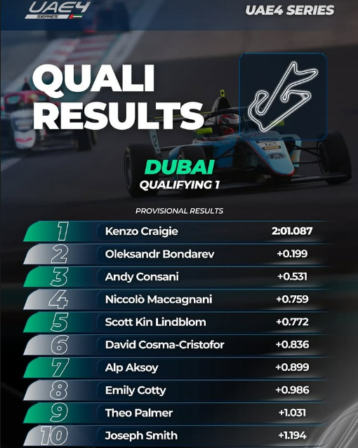 У суботу, 31 січня, на автодромі Дубаї стартували ключові сесії третього гоночного етапу сезону Формули-4 Близького Сходу (UAE4), у якому бере участь український пілот Олександр Бондарев.