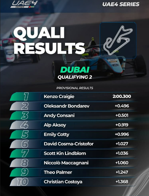 Перед початком гоночного дня Олександр Бондарев очолює загальний залік Формули-4 Близького Сходу, маючи у своєму активі 102 очки.