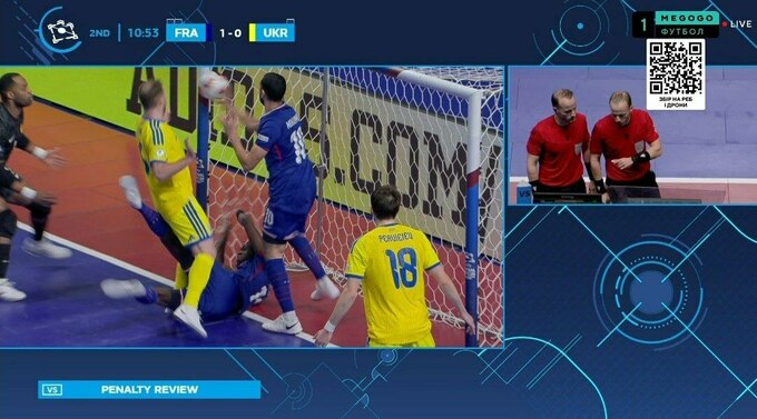 На 29-й хвилині матчу рукою з лінії воріт м'яч виніс французький універсал Мохаммед. За це він отримав червону картку, а у ворота збірної Франції був призначений пенальті, який реалізував Євгеній Жук. Рахунок на табло – 1:1.