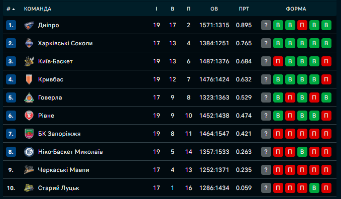 Турнірна таблиця