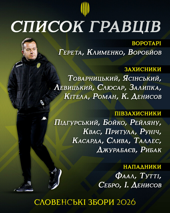 Іван Федик та його тренерський штаб взяли у Словенію 26 футболістів. Вперше з основною командою на зборах за кордоном працюватимуть двоє вихованців Академії «Руху» – Кирило Денисов та Кирило Рибак.