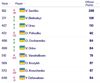 Ще зі змін у топ-10: Тейлор Фрітц піднявся на сьому позицію, Бен Шелтон опустився на дев'яту сходинку.