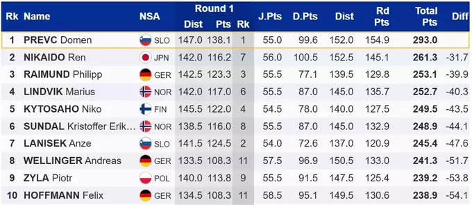 Вдруге поспіль особисте змагання у Вілінгені виграв словенець Домен Превц, набравши 293 бали.